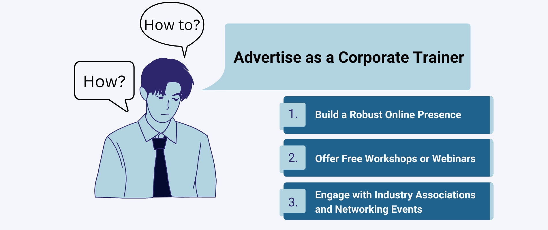 Here are the top three steps every corporate trainer should consider to advertise and carve a niche in the market effectively:
